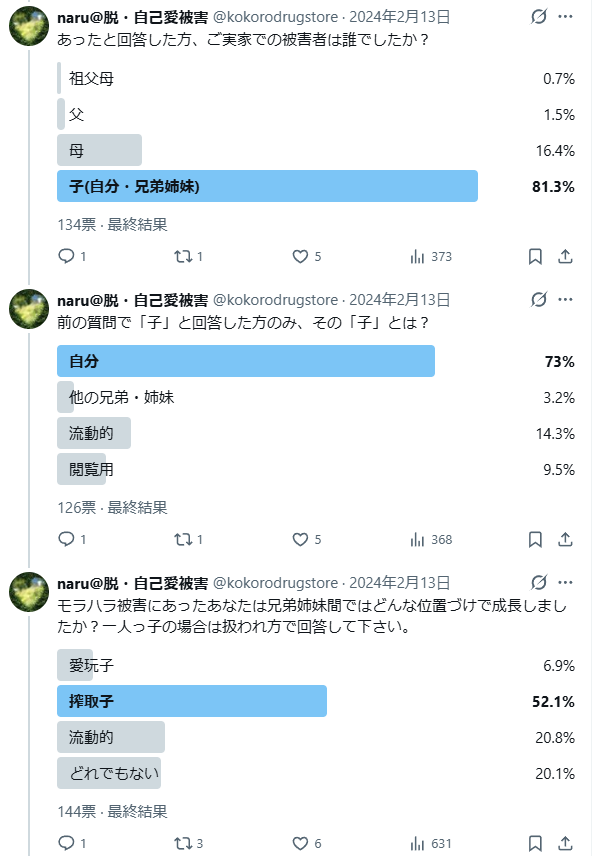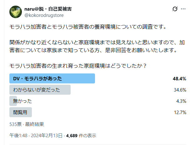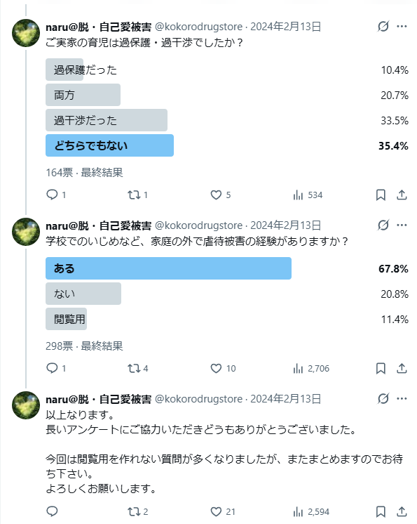 — naru@脱・自己愛被害 (@kokorodrugstore) February 13, 2024